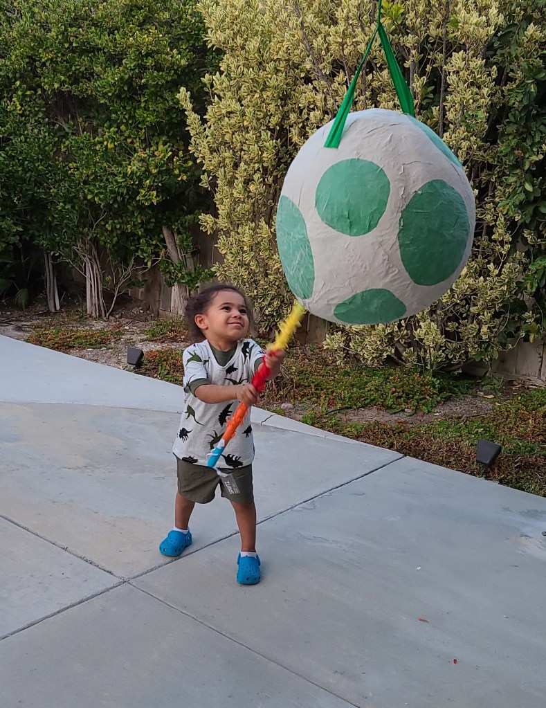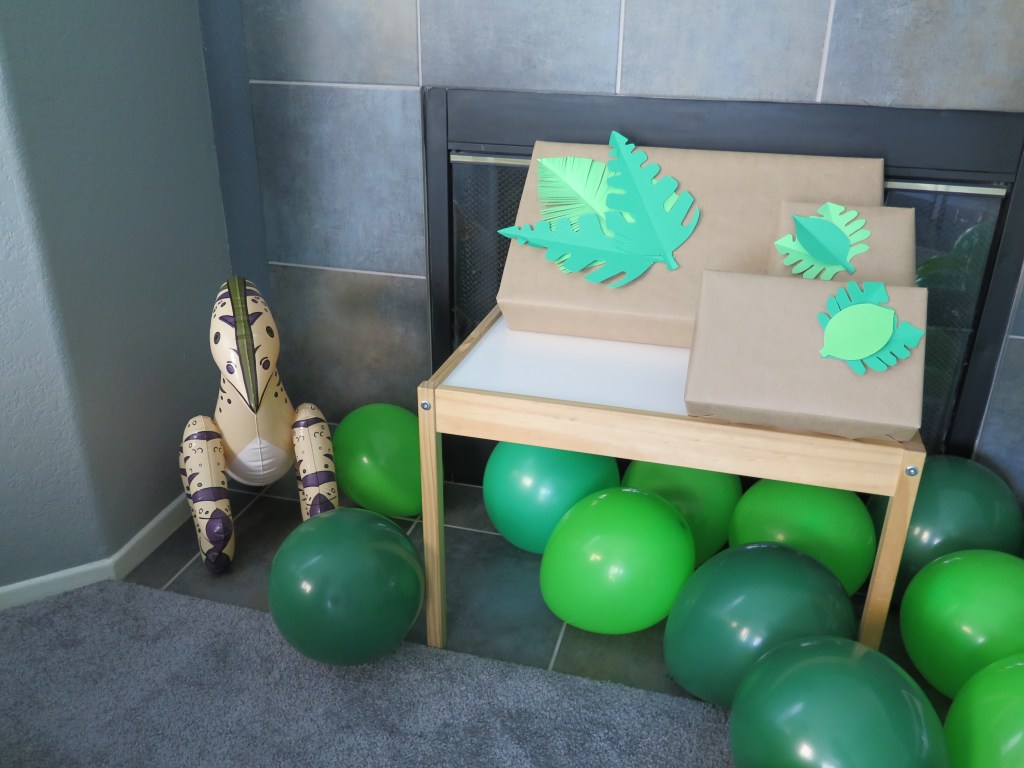 One of our traditions with birthday parties are piñatas and fun outdoor activities. I made a dinosaur egg piñata and the kids had a dinosaur egg hunt afterwards. I wrote a how-to blog on this DIY dino egg piñata and the super fun dinosaur egg hunt. Here is a link to that blog.