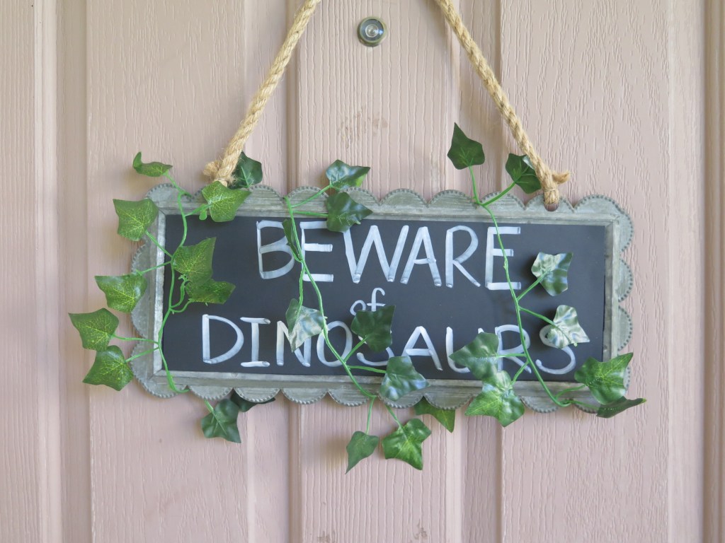 Added some black dinosaur prints leading up to the house and voila!!! The tone is set for a dino extravaganza!!!