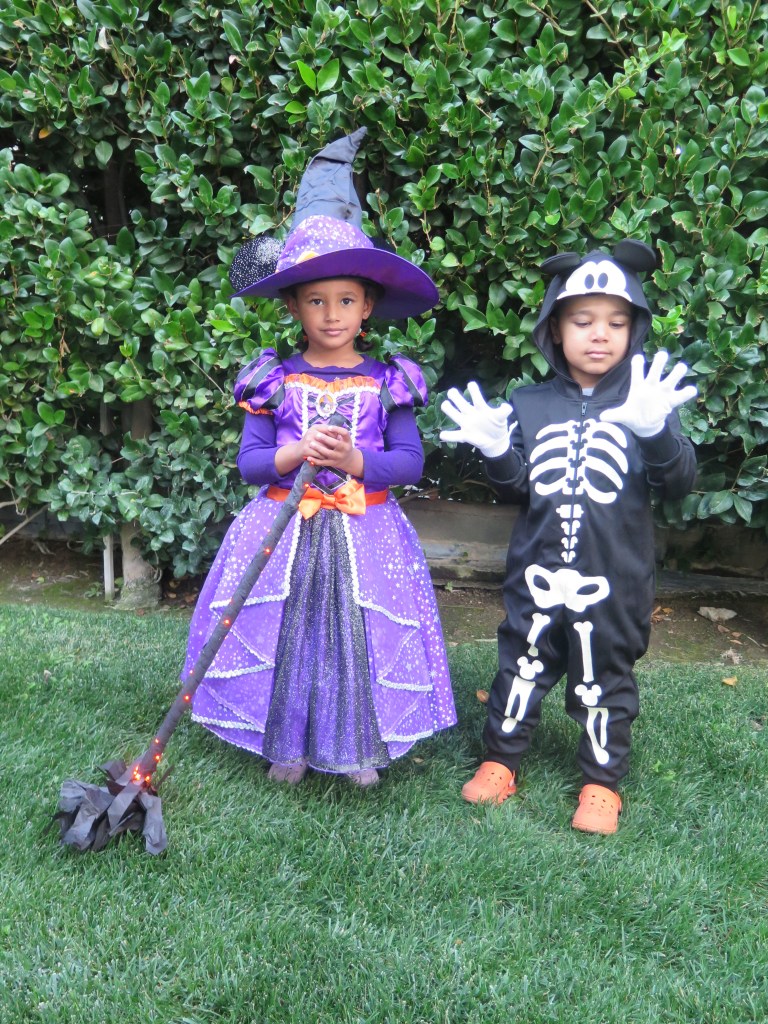 Lastly, I made a purple and orange Mickey/Minnie Mouse banner out of cardstock and yarn to match my kids’ costumes (pictures below). A simple banner can change the theme of this spooky mobile, which makes it great for reusing for future Halloweens.