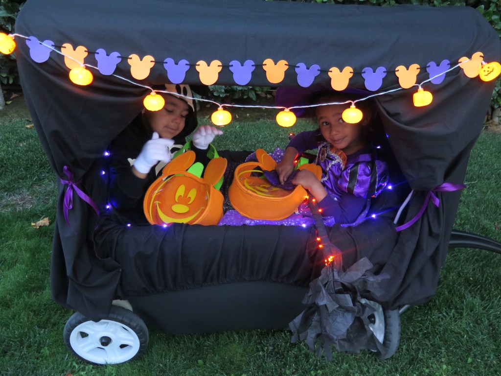 Bonus: Put a bluetooth speaker in the wagon and play Halloween Disney songs (or any songs to match your theme) to set the spooky mood!