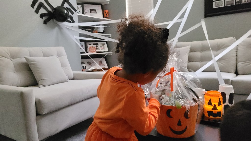 Who doesn’t love a carnival? My kids were so excited about this idea. We played games, decorated pumpkin cookies, and the kids loved crawling under a huge spider web to get their Halloween gift baskets. Definitely a spooktacular time!