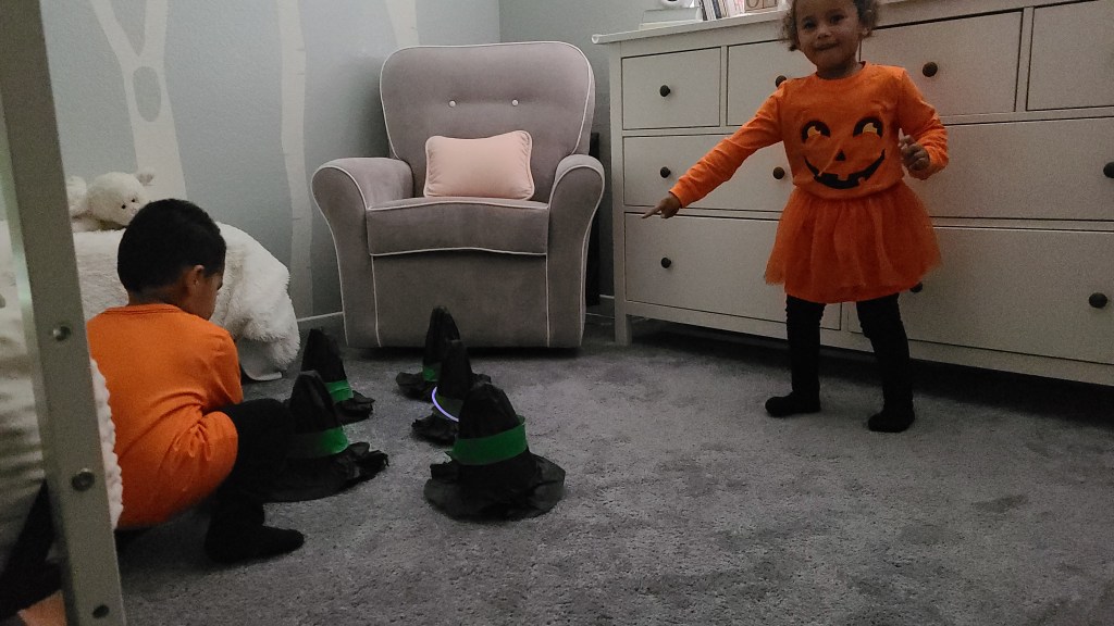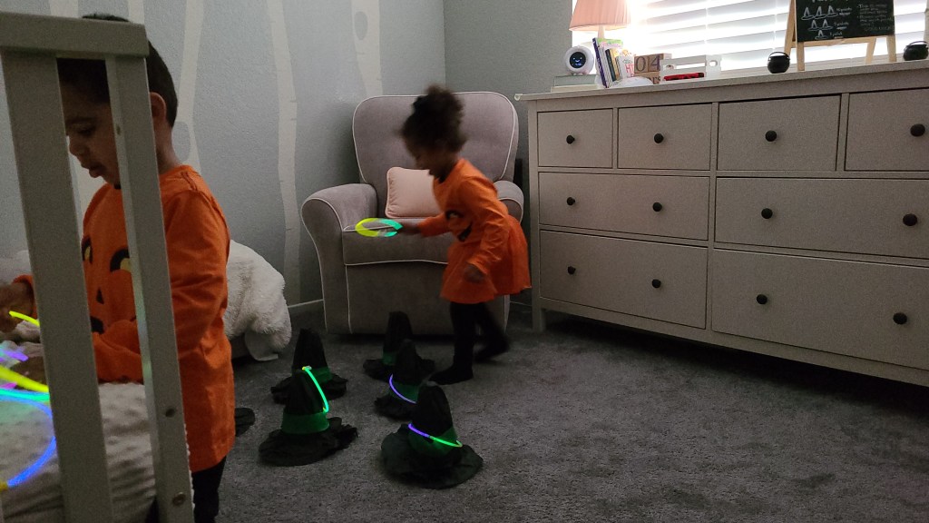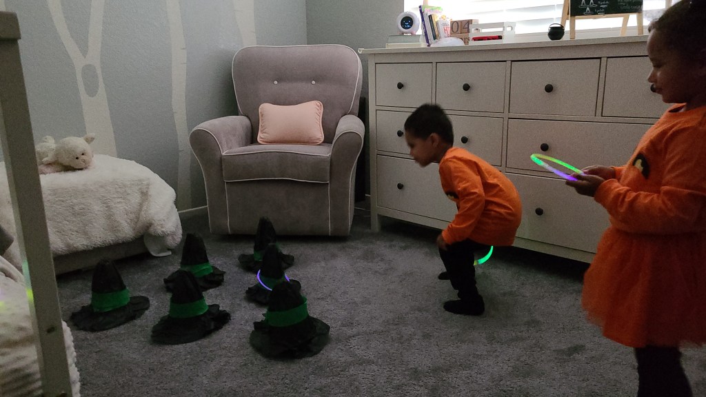 They LOVED using flashlights to find the candy corns! They placed their candy corns in their trick-or-treating bags and opened them after the game.