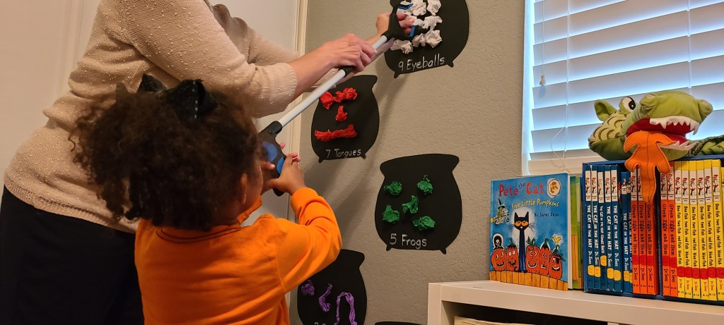The second game was called Hocus Pocus Aim and Focus. It was a great hand-eye coordination and counting activity.