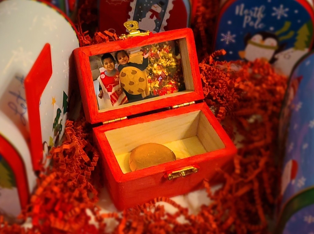 I printed a set of wallet sized photos the kids glued to the inside lid. We added a little chocolate inside each box and for a finishing touch the kids wrote their name on either side of each box with a thin marker pen