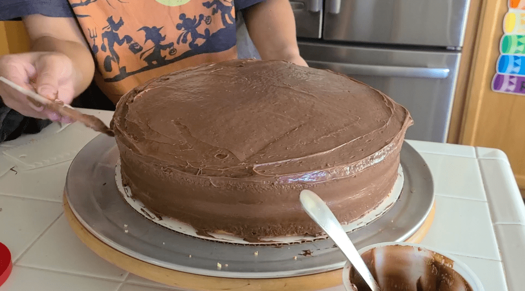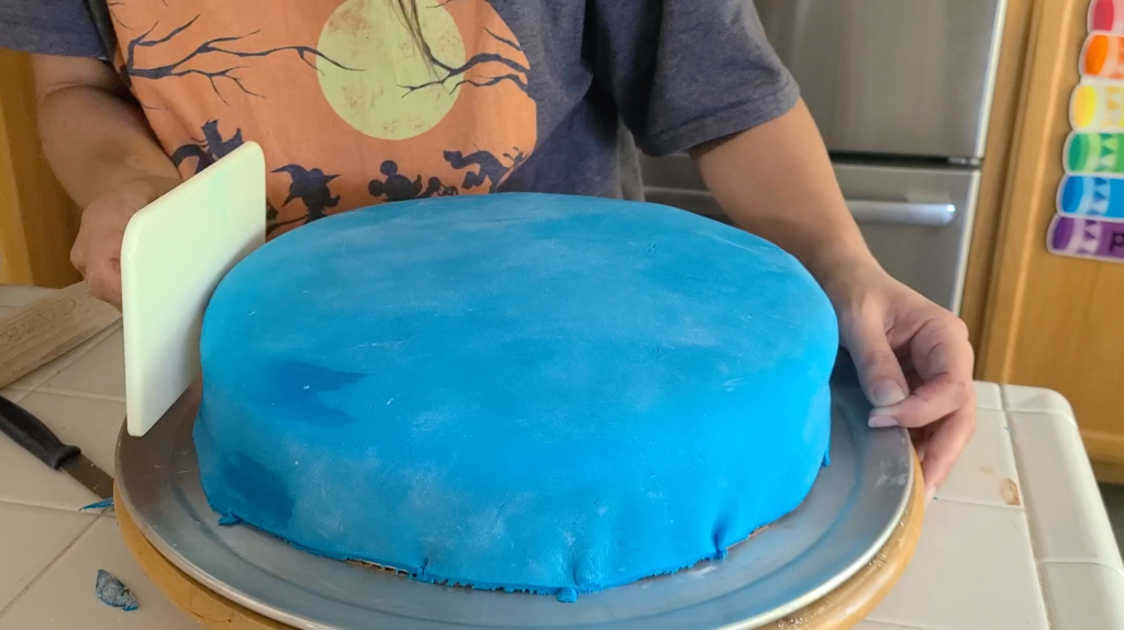 I used this cake smoother to get an even and smooth layer of chocolate frosting (an important step before placing fondant on top)