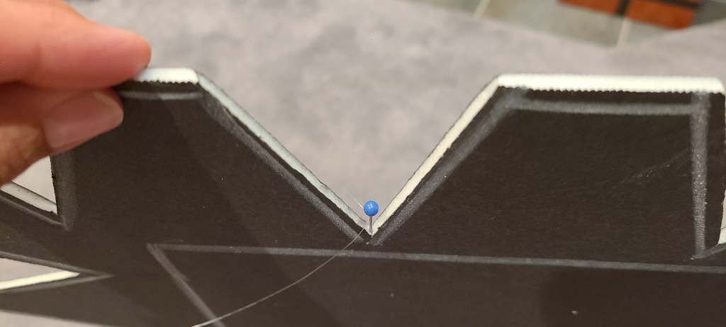 To hang the Thwomps, I tied fishing wire to top of a ball tip needle and pushed the needle into the top of the foam board