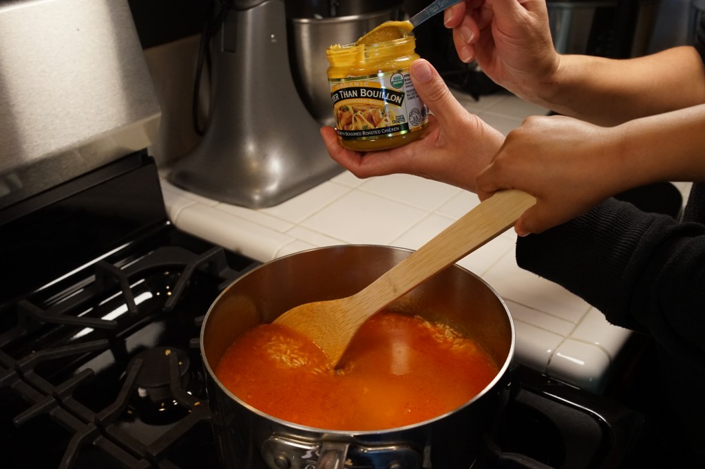 Stir in remaining 3 cups water, chicken base, and salt to rice. Bring to a boil