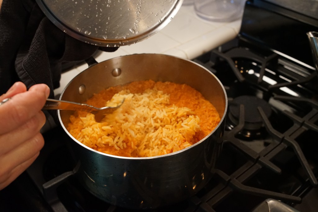 After 20 minutes, lift lid to remove steam. Turn off heat and let sit, covered, for 10 additional minutes