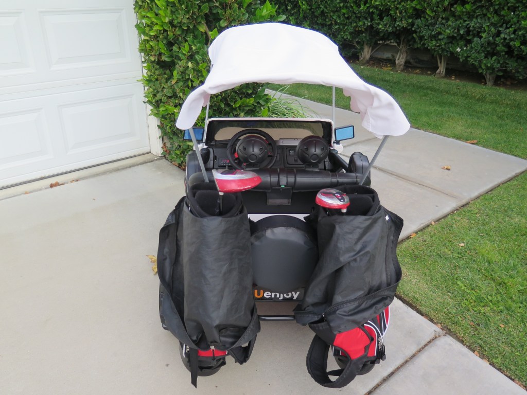 For the top of the golf cart, I used the canopy from our two person wagon.