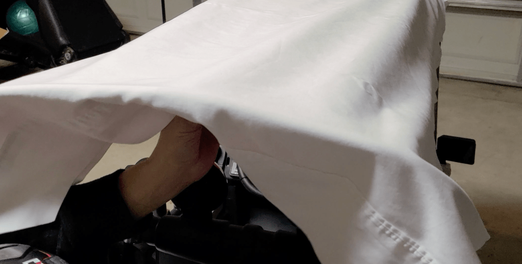 Once the canopy was secured, I draped a folded white twin size sheet over the top.