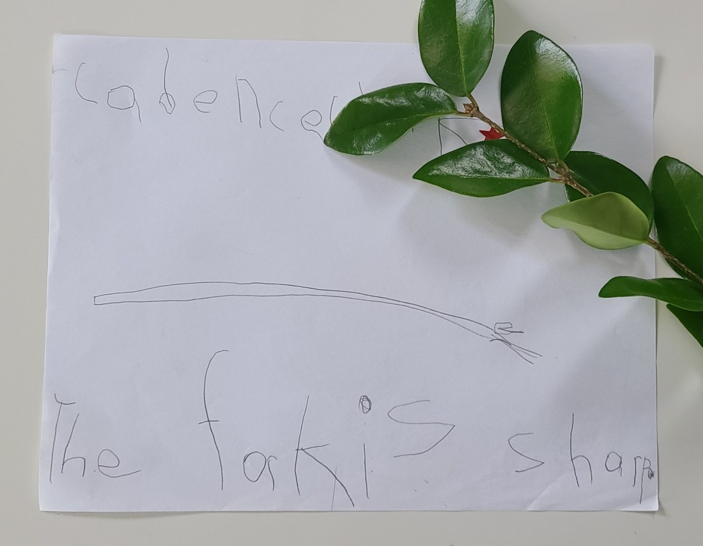 We were learning about the H Brother (‘sh’) and Bossy R (‘or’ and ‘ar’) in phonics the week we wrote the above sentence, “The fork is sharp.”. We used writing time to review the two phonics rules we had learned. See this blog for more info on the H Brothers and Bossy R.