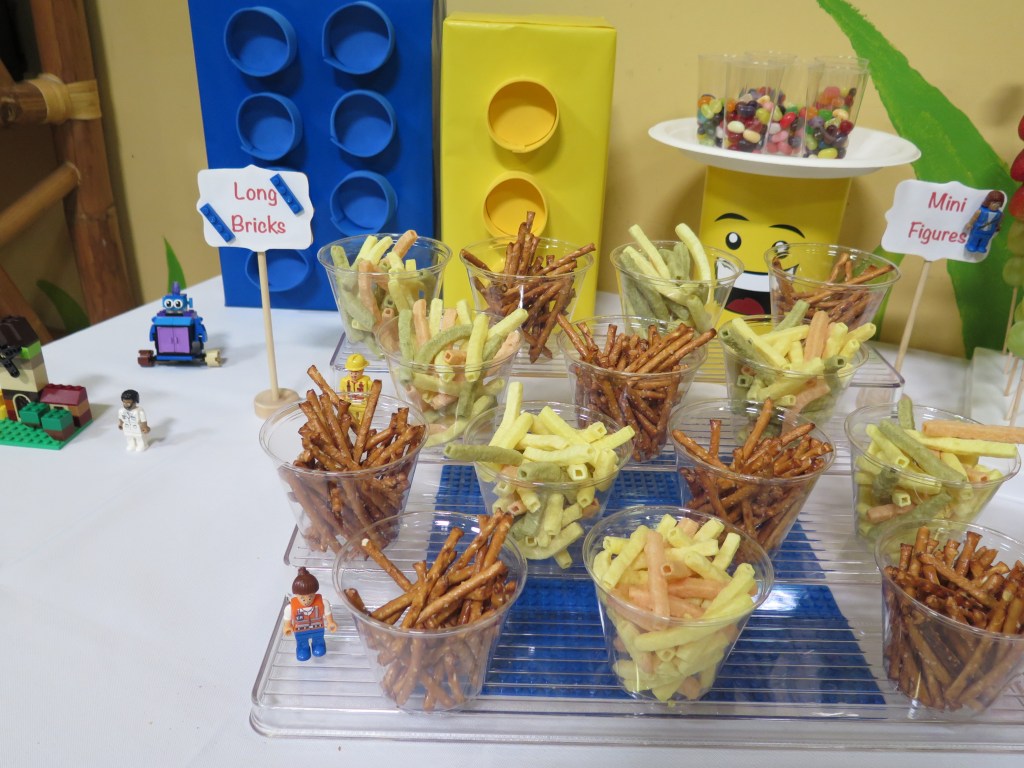 This was such a fun and colorful birthday theme and I love that my son was able to make so many of the decorations himself! He started building all of his legos a month before his birthday party and this was the result: