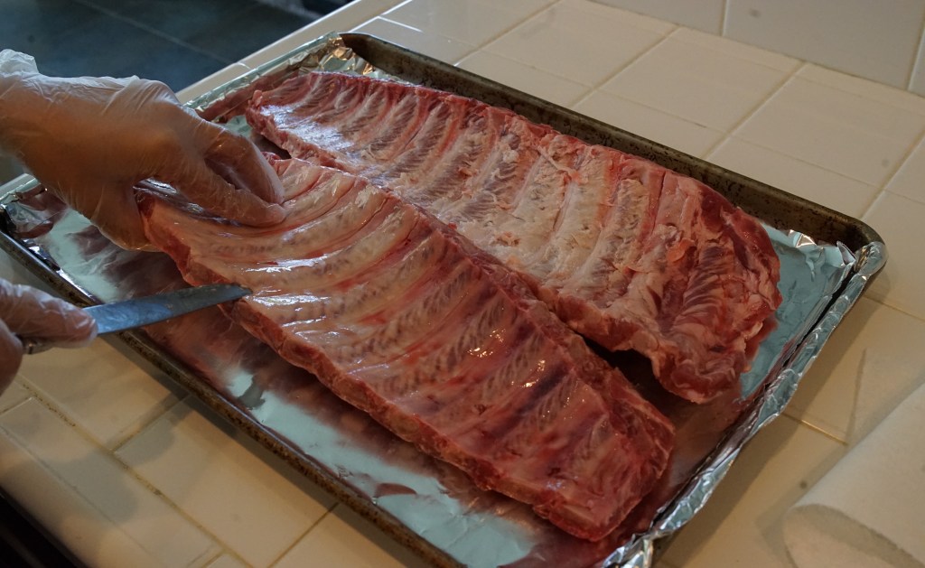 The membrane is a thin layer of tissue that keeps the dry rub from getting into the meat, so it is best to remove it. This helps the seasoning soak in and makes the ribs extra tender. How to: place a butter knife under the thin layer and use your other hand to peel it away from the meat.